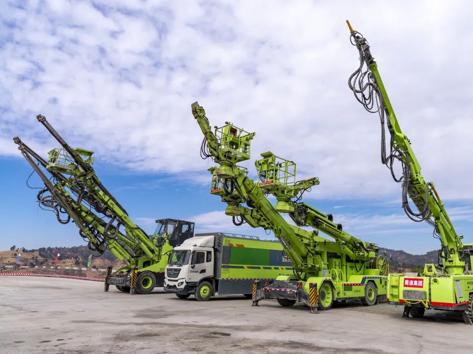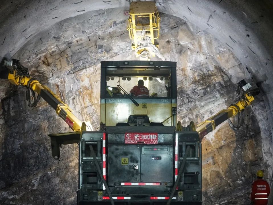 其中,隧道建設(shè)中的“變形金剛”起到了至關(guān)重要的作用。川隧人在機(jī)械化、智能化方面先行先試、大膽探索,使用了全電腦版三臂鑿巖臺車、多功能智能拱架安裝臺車、智能濕噴機(jī)械手、智能拱錨噴一體化臺車、自行式中央水溝蓋板預(yù)制安裝臺車、智能化二襯澆筑臺車、遠(yuǎn)程集中指揮車等隧道智能建造中的“黑科技”,還積極推行“油轉(zhuǎn)電”,在行業(yè)內(nèi)率先使用電動挖機(jī)、電動裝載機(jī)、電動運渣車、電動混凝土罐車、電動水車等純電動節(jié)能設(shè)備,形成了全套隧道綠色智造工裝體系和可復(fù)制推廣的電動工程機(jī)械運用模式,實現(xiàn)了隧道IV、V級圍巖單循環(huán)施工由16h縮至12h,減人50%,人工成本大幅降低,電動設(shè)備較傳統(tǒng)柴油設(shè)備能耗降低了60%~80%,單洞每年可減少碳排放1100噸。